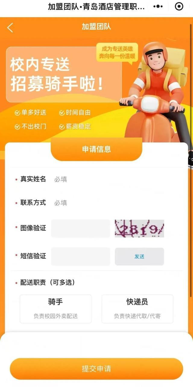而从其小程序,我们也看到了外卖骑手招募链接。