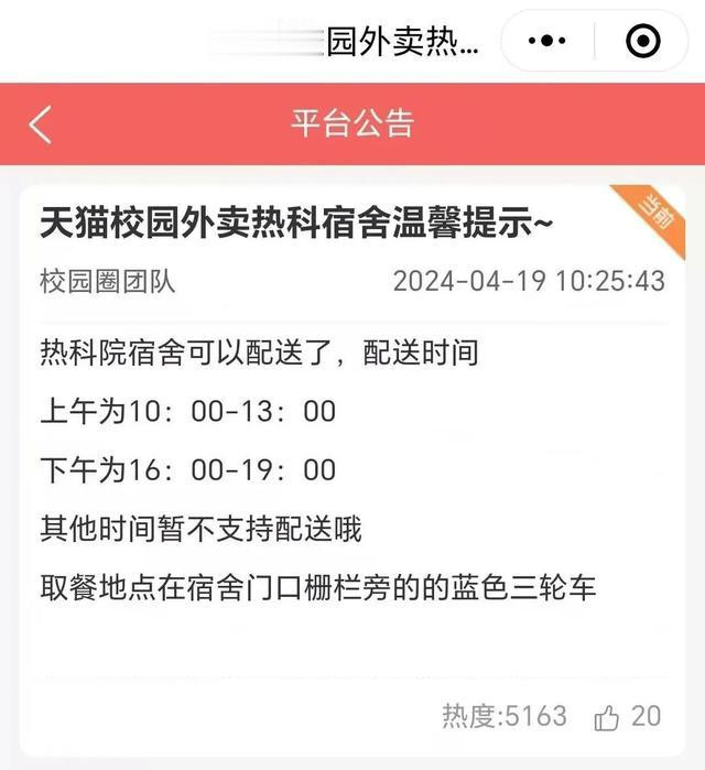 天猫外卖直接在校园招募“学生”作为转送骑手或快递员。